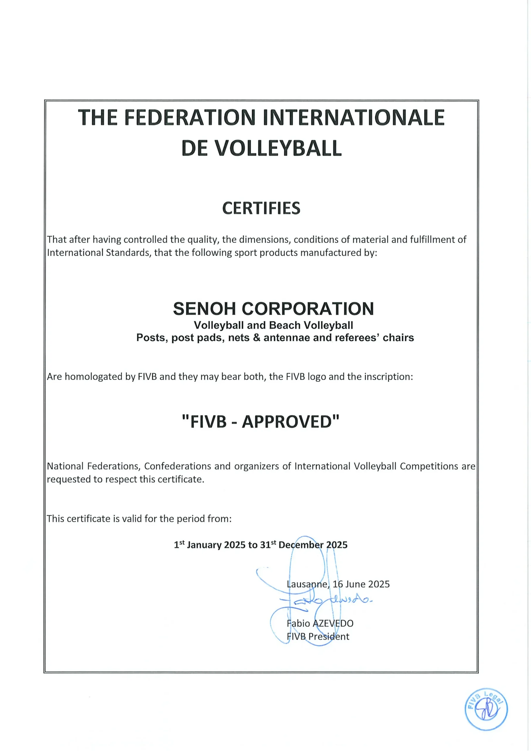 Our volleyball and beach volleyball equipment stand out from the rest because they are officially certified by the Fédération Internationale de Volleyball (FIVB). This globally recognized certification ensures that every product meets the highest standards of performance, durability, and precision. Whether it’s the hard-hitting action of indoor volleyball or the dynamic play on the beach, our FIVB-approved gear is designed to elevate your game, trusted by professionals, and used in world-class competitions. Choose the equipment that sets the benchmark for excellence—on any court, anywhere.
